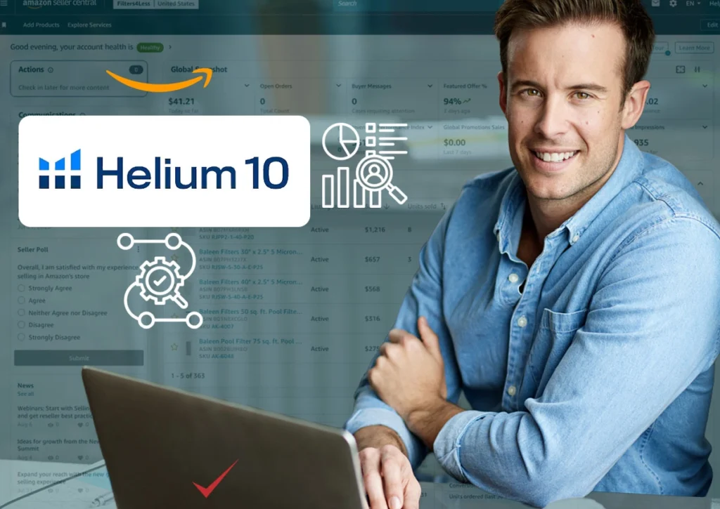 Strengthen your marketplace presence with Helium 10 keyword research, listing optimization, and market analysis to maximize reach and conversions.