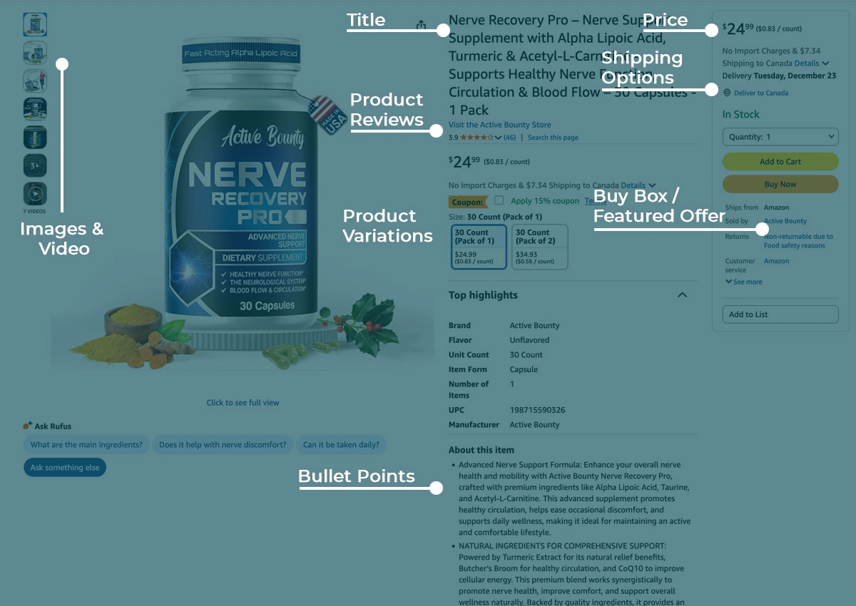 An Amazon product listing is the product page where customers view your title, images, bullet points, description, price, and reviews. A strong listing includes SEO keywords, high-quality content, and accurate attributes to help shoppers find and purchase your product.